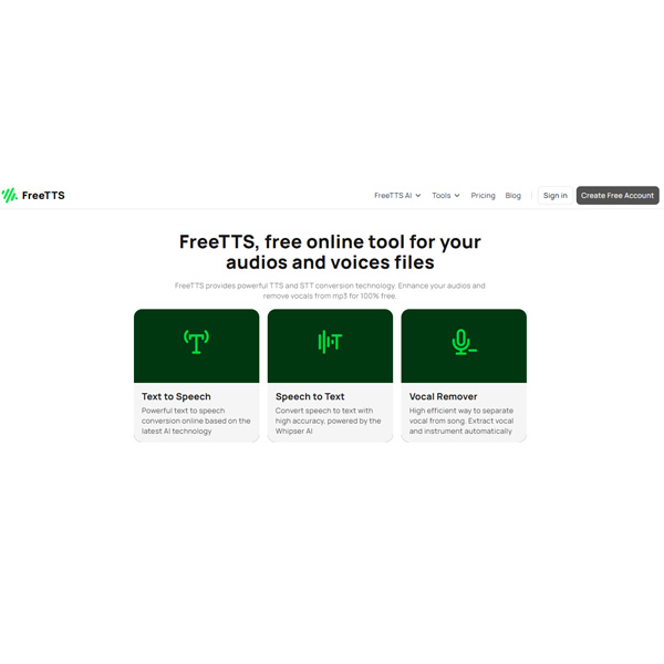 FreeTTS is the highest rated text-to-speech (TTS) conversion site on the internet, powered by advanced artificial intelligence (AI). With it, users can quickly and easily convert text with a fairly natural voice in just a few clicks. FreeTTS offers both male and female voices for free, allowing anyone to create content without having to invest in expensive software.