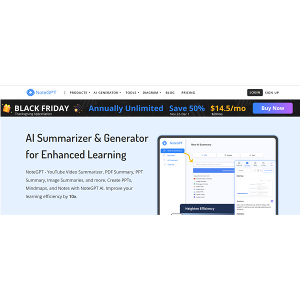 Optimize your learning with this multifunctional AI assistant. Summarize YouTube videos, PDFs, articles, generate mind maps and organize your notes more intelligently.