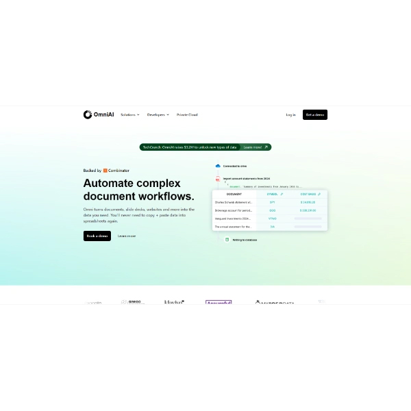 An AI platform to automate data extraction from documents. Easily transform PDFs, presentations and websites into structured data, all via a simple, secure API