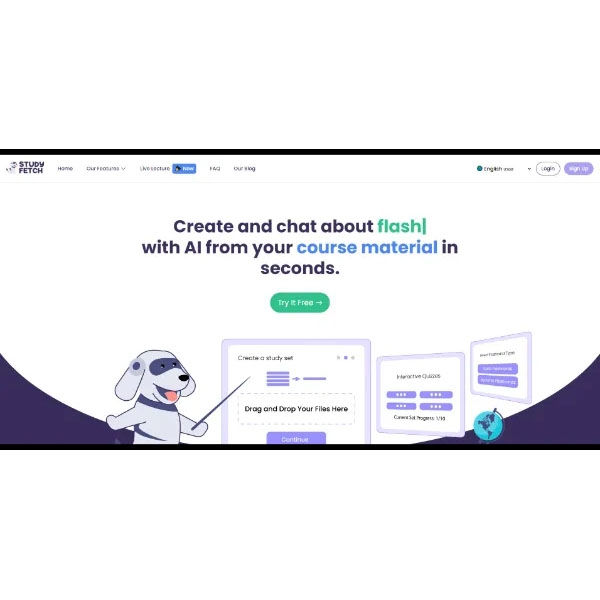 StudyFetch | A range of AI tools to help you succeed in your studies: automated note-taking, flashcards, quizzes, virtual teacher, etc.