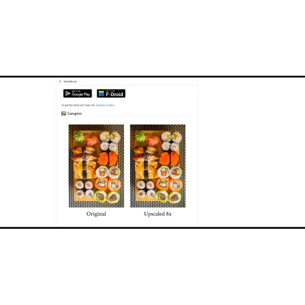 Increase the resolution of your images by up to 8 times using the MNN Deep Learning network and Real-ESRGAN. Also available on mobile