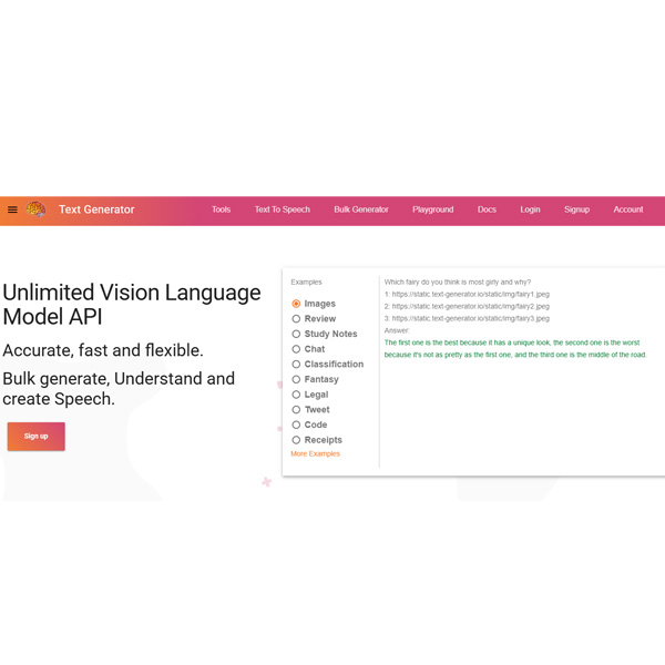 High quality, multilingual AI text generator. You get 100 free requests per month.
