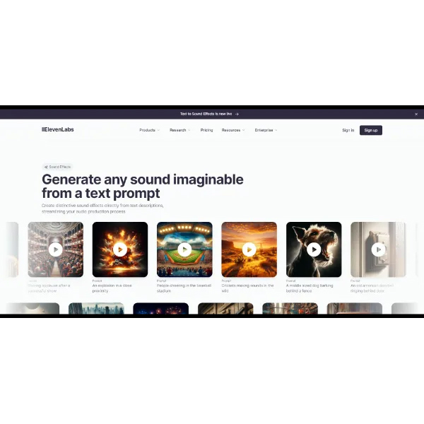 Generate a variety of sound effects from simple text descriptions. Perfect for films, video games and media. Commercial use included
